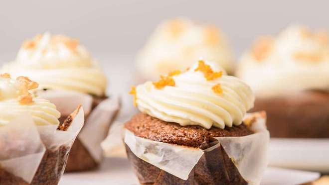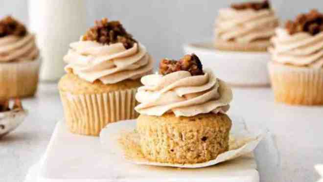 在感恩节的甜点桌上添加这些黄油山核桃纸杯蛋糕吧。蓬松柔软,这些带霜的感恩节纸杯蛋糕还有美味的装饰!