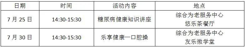 为了提高老年人自我保健、防病强身的意识,树立科学健康的生活方式,综合为老服务中心将开展健康饮食讲座,向老年人普及科学饮食知识。