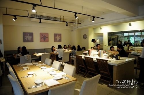 餐厅位于台北一个高级豪宅的地段中,并未在大路旁。出了捷运站,我们一头雾水,只能大概猜了个方向向前走,准备找人问路。这时,看见一位衣着时尚的年轻女士迎面走来,便上去询问。她用手向身后的方向指了一下,张了张口,又把要说的话吞了回去。然后说“我带你们去吧,不太好找”,然后不由分说,毫不犹豫的转身又往来的方向走去。