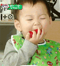17. 取一张放凉的班戟皮,把贴着煎锅的那面朝上,然后用勺子挖一些淡奶油放在中间,在奶油上放入草莓(大草莓1个,小草莓2个就好啦!)