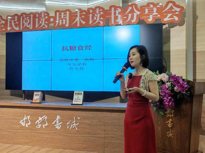 河北省中西医结合内分泌专业委员会、河北省女医师协会内分泌代谢病专业委员会第一届委员、邯郸市第二医院内分泌科副主任、主任医师鲁光辉,为来自全市各行业、各年龄层,热爱读书、关注健康的热心读者们作了题为“抗糖食经”的公益健康科普讲座。