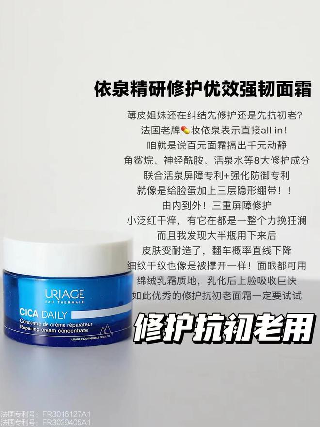 薄皮姐妹还在纠结先修护还是先抗初老?法国老牌药妆依泉表示直接all in,咱就是说百元面霜搞出千元动静,角鲨烷、神经酰胺、活泉水等8大修护成分,联合活泉屏障专利+强化防御专利,就像是给脸蛋加上三层隐形绷带,由内到外,三重屏障修护。