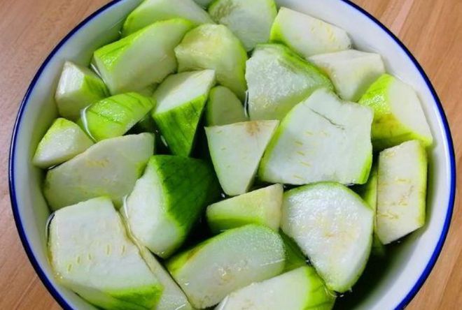 操作步骤:1,丝瓜洗净后去皮,去头尾,切成滚刀块,放入碗中加入食盐和清水,静置一会。白玉菇洗净后挤干水分,鸡蛋打入碗中,加入食盐和料酒搅拌均匀。