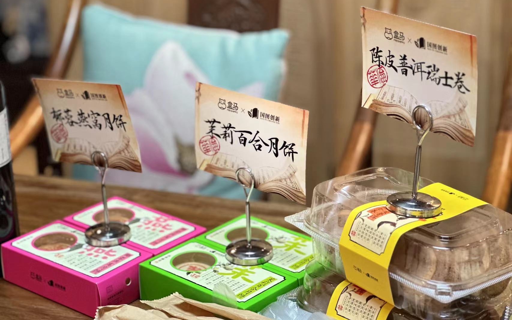 盒马与国家图书馆联名推出“本草纲目”系列主题产品,其中包括茉莉百合绿豆月饼、椰蓉燕窝草本月饼、陈皮普洱瑞士卷、山楂茯苓三明治、洛神乌梅饮等。据盒马相关负责人介绍,将《本草纲目》中的东方美食与盒马重点商品结合,遵循的原则是好吃和健康,研发过程采纳了多位中医药学专家的建议。从年初开始联名构想,历经数月研发和口味调整,直至今年6月底才打磨完成。